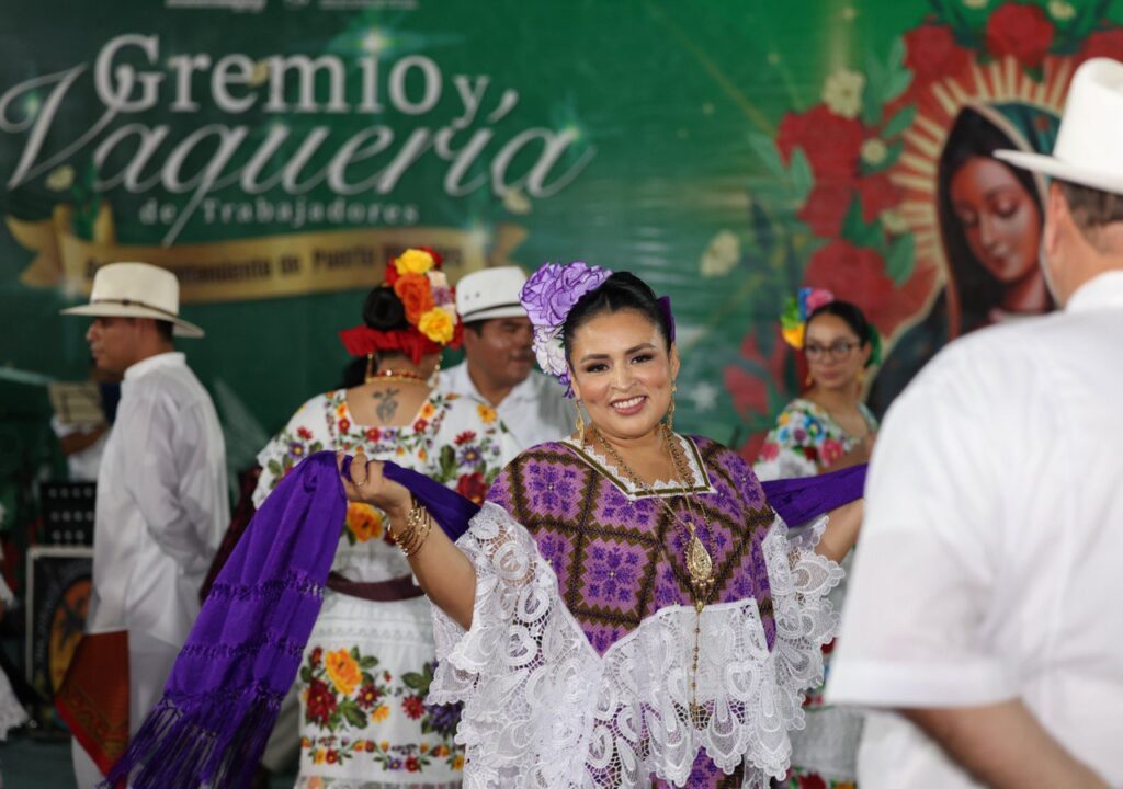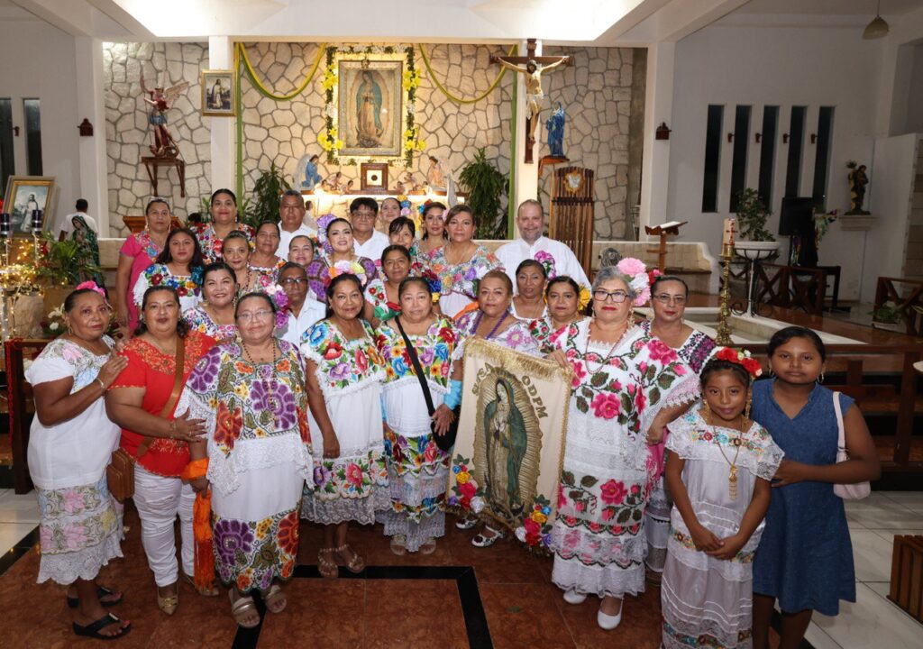 Puerto Morelos.— Encabezados por la presidenta municipal Blanca Merari Tziu Muñoz, el gremio de trabajadores del Ayuntamiento de Puerto Morelos realizó su tradicional procesión a la iglesia de La Guadalupana, participó en una misa y en una vaquería en el parque de la colonia Zetina Gasca, en lo que fue el arranque de las fiestas patronales.