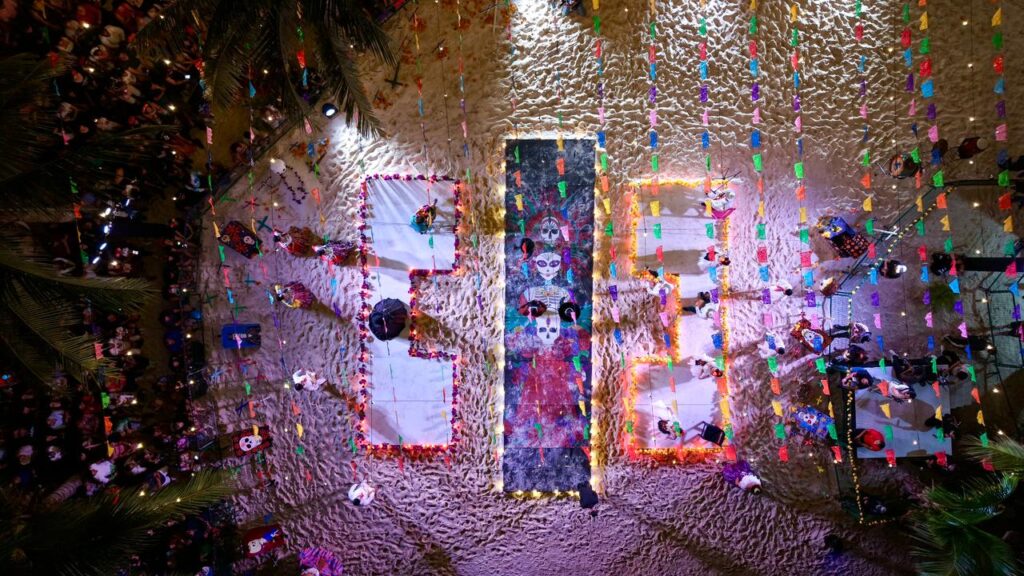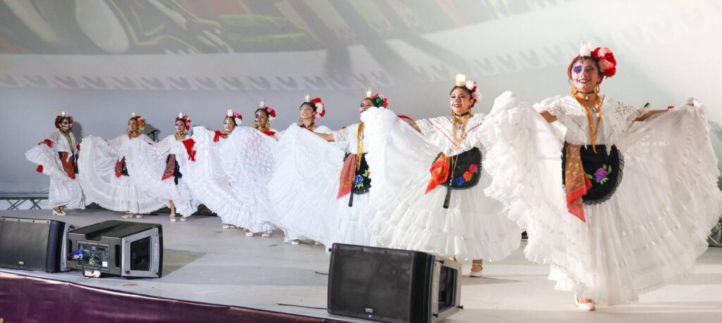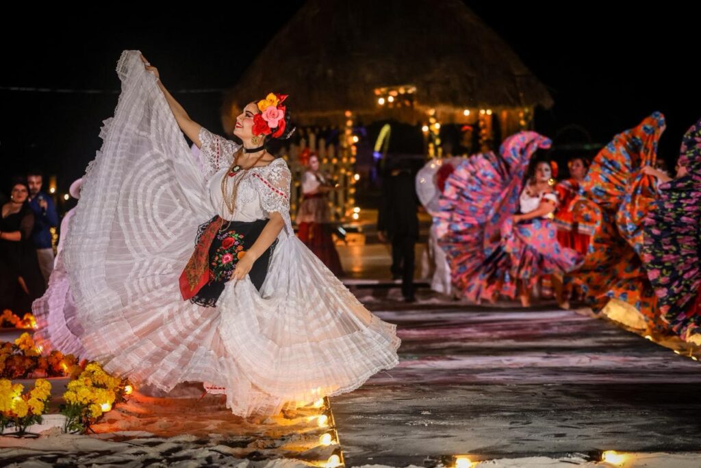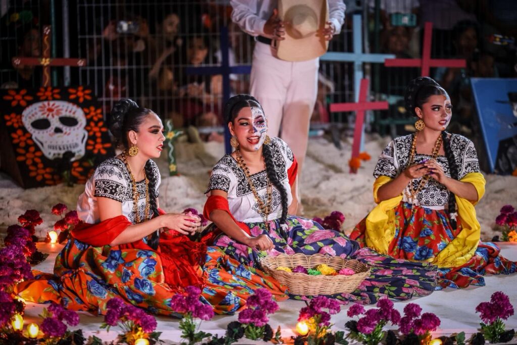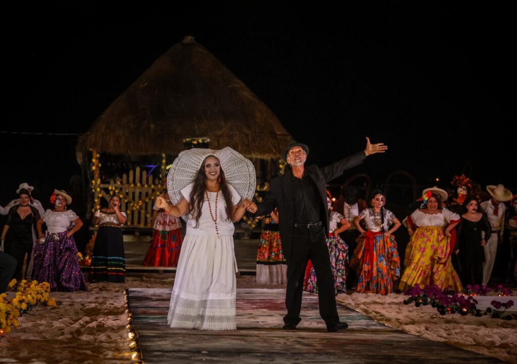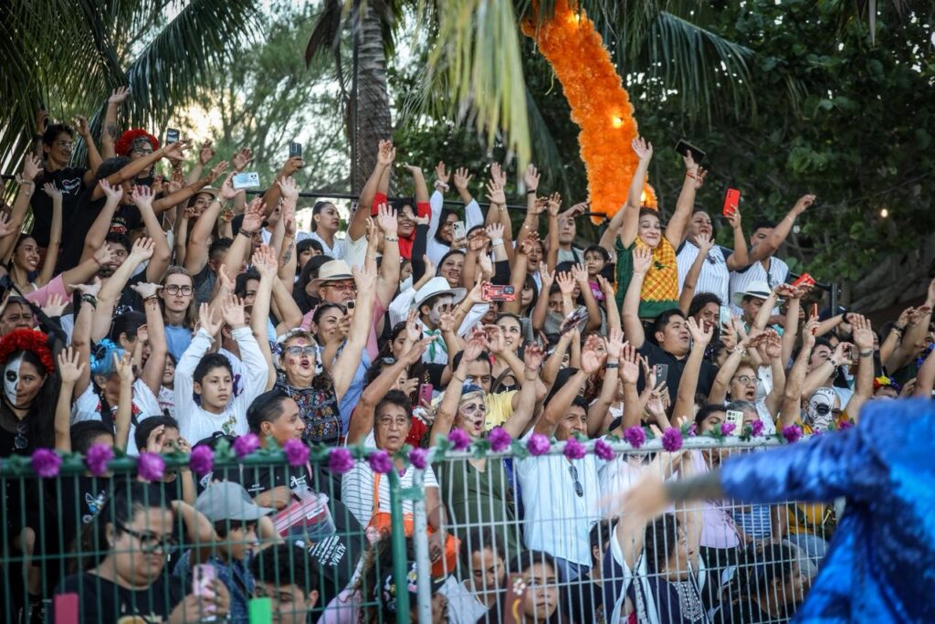 La noche siguió en el escenario principal, donde la música encendió la piel de los asistentes con la voz de Keyra Juárez; la escuela de danza “Talulah”; el grupo “Yaaxche” del Instituto Tecnológico de Cancún; el Ballet Folclórico “Anirak”; la Compañía Municipal de Coro; el grupo “Sabor con 6”; así como la pasarela del concurso de catrinas y catrines.