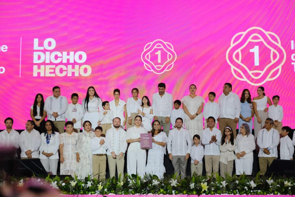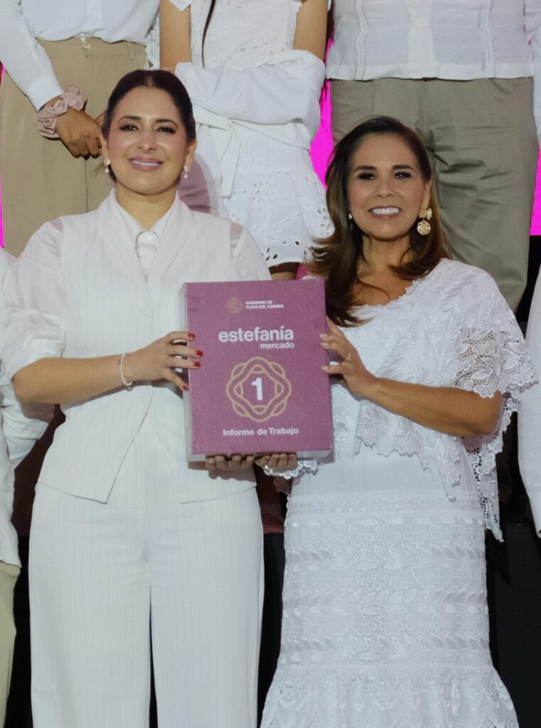 Previo a este evento, en el auditorio “Leona Vicario” del Palacio Municipal se llevó a cabo la Cuarta Sesión Pública y Solemne del Cabildo de Playa del Carmen, la presidenta municipal Estefanía Mercado Asencio entregó la glosa del primer informe de su administración del periodo 2024-2027 a la secretaria de Gobierno, Cristina Torres Gómez, quien asistió en representación de la gobernadora Mara Lezama, a la diputada Lilia Inés Mis Martínez por el Congreso del Estado y a la magistrada Gabriela del Carmen Rodríguez Díaz por el Tribunal Superior de Justicia.
