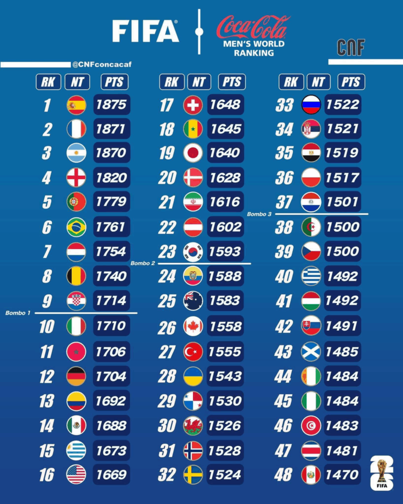 Vertice MX > Blog > Deportes > España encabeza el ranking de FIFA; México cae al puesto 14