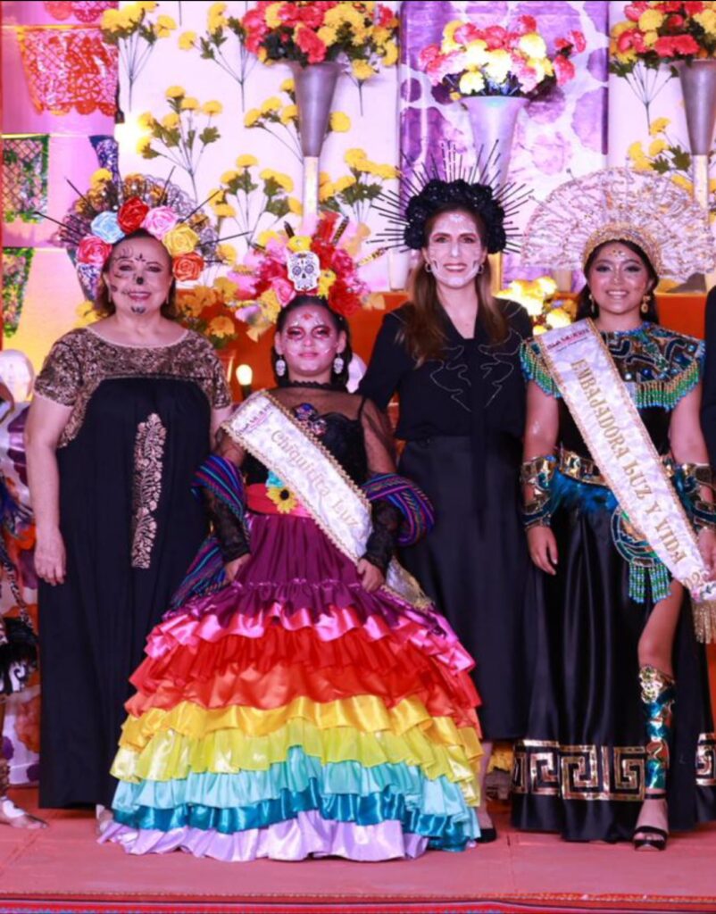 En un ambiente lleno de color, historia y orgullo, se llevó a cabo la coronación de la embajadora del Festival “Luz y Vida: Entre Vivos y Muertos”, la joven Tanit de María Valerio Romo, quien también deleitó al público con una presentación musical.