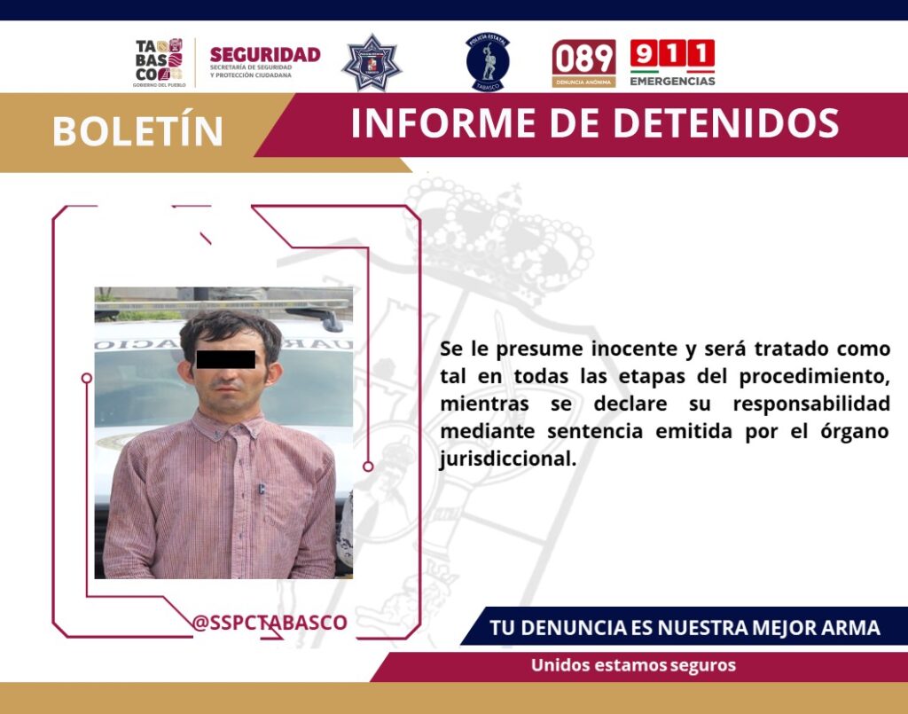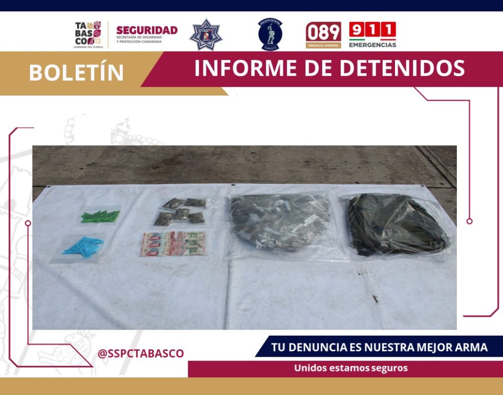 En el marco de la Estrategia Nacional Antiextorsión y del Plan de Contención de Delito que implementa la Secretaría de Seguridad y Protección Ciudadana (SSPC) en coordinación con la Fuerza Interinstitucional de Reacción Táctica (FIRT) Olmeca, llevaron a cabo la detención de un masculino por presunto delito Contra la Ley General de Salud.