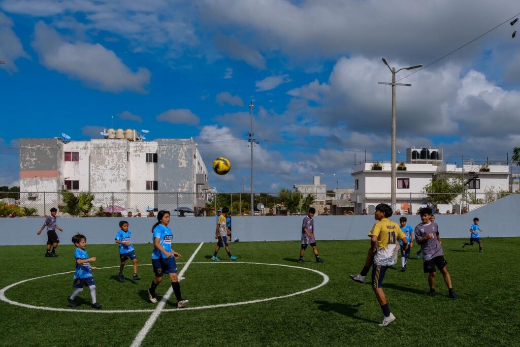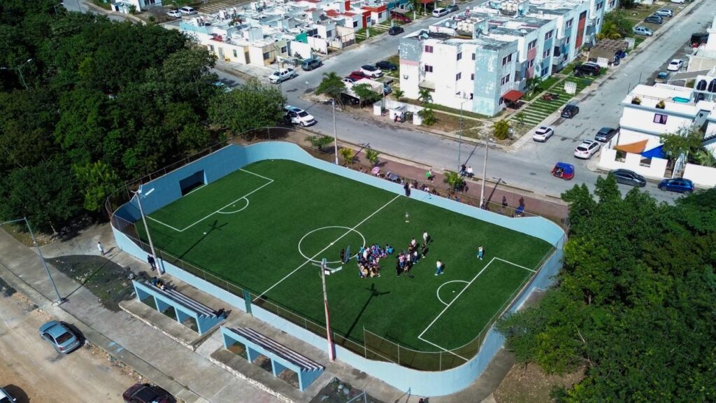 Vertice MX > Blog > Quintana Roo > Mara Lezama y Ana Paty Peralta entregan renovada cancha de pasto sintético en la Región 258 de Cancún