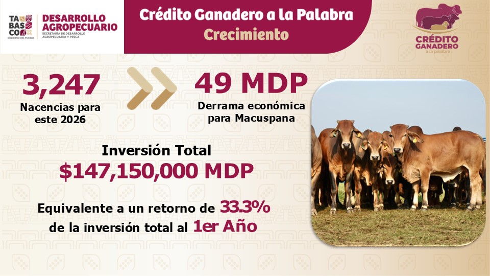 A través del programa Crédito Ganadero a la Palabra, este año ya se entregaron paquetes –10 novillonas y un semental– a productoras y productores de Balancán, Tenosique y Cárdenas, y también se entregarán en Huimanguillo, Cunduacán, Jalpa de Méndez y Nacajuca, informó Joaquín Alejandro Ligonio