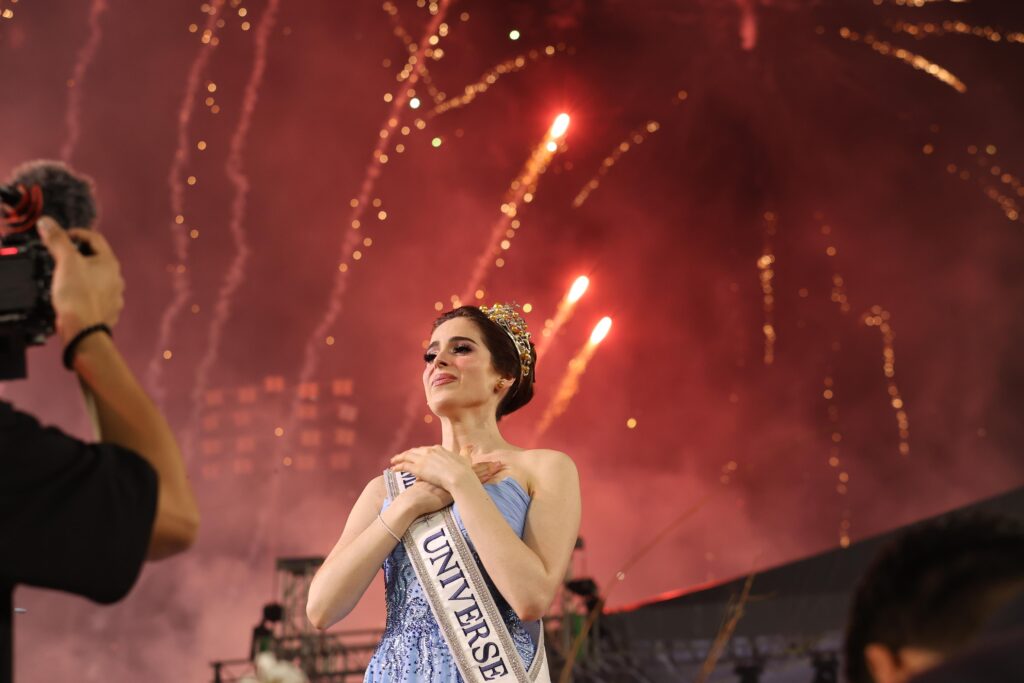 Vertice MX > Blog > Espectáculos > Reciben en medio de una verbena de algarabía miles de familias a Miss Universo 2025, Fátima Bosch