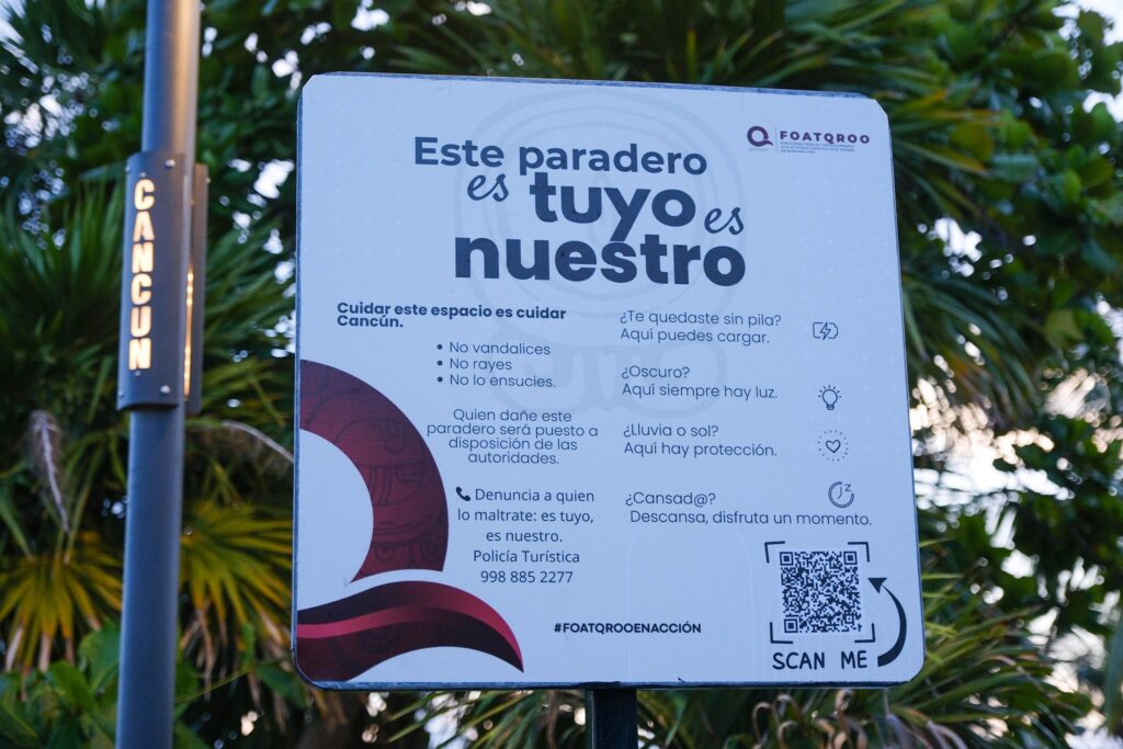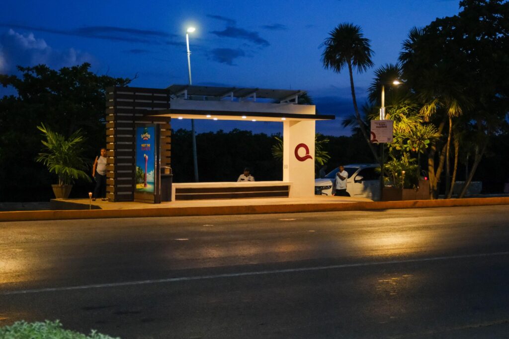 La titular del Ejecutivo supervisó que 42 paraderos estén mejor iluminados, dignos, más seguros para todas y todos, acompañada por el secretario de Turismo, Bernardo Cueto Riestra, y el titular del Fideicomiso para el Fortalecimiento de la Actividad Turística de Quintana Roo (FOATQROO), Ricardo Archundia.